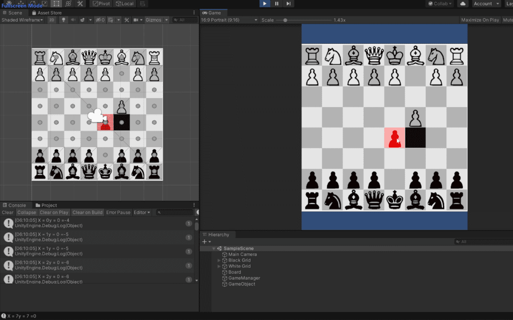 One of the early games I developed is a 2D chess game for two players on a single device, designed to run on Android. The game uses a custom algorithm I created to manage all aspects of gameplay, from legal moves to special states like check and checkmate.